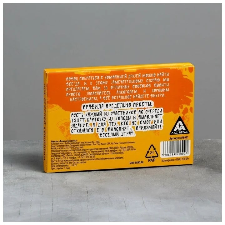 Купить игра для компании "фанты буханты" 20 карт от 100 руб. с доставкой до пункта выдачи в Ирбите. Интернет магазин ДекаМаркет. Оплата при получении.